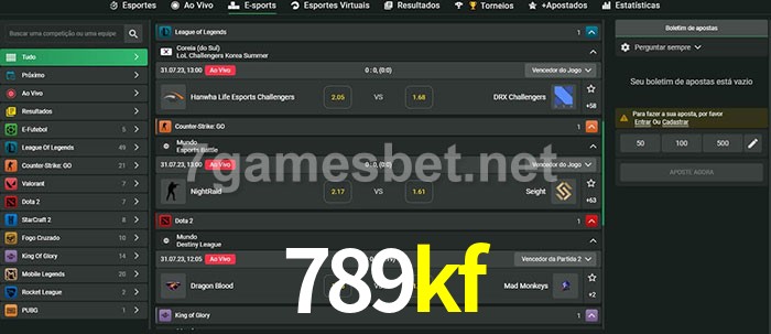 O 789kf oferece uma grande seleção de opções de apostas em e-sports com probabilidades competitivas